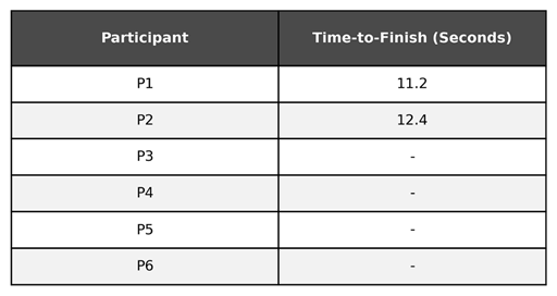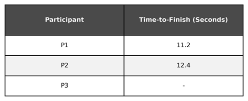 To answer that, let’s measure the time until each participant reaches the event we are measuring: crossing the finish line.